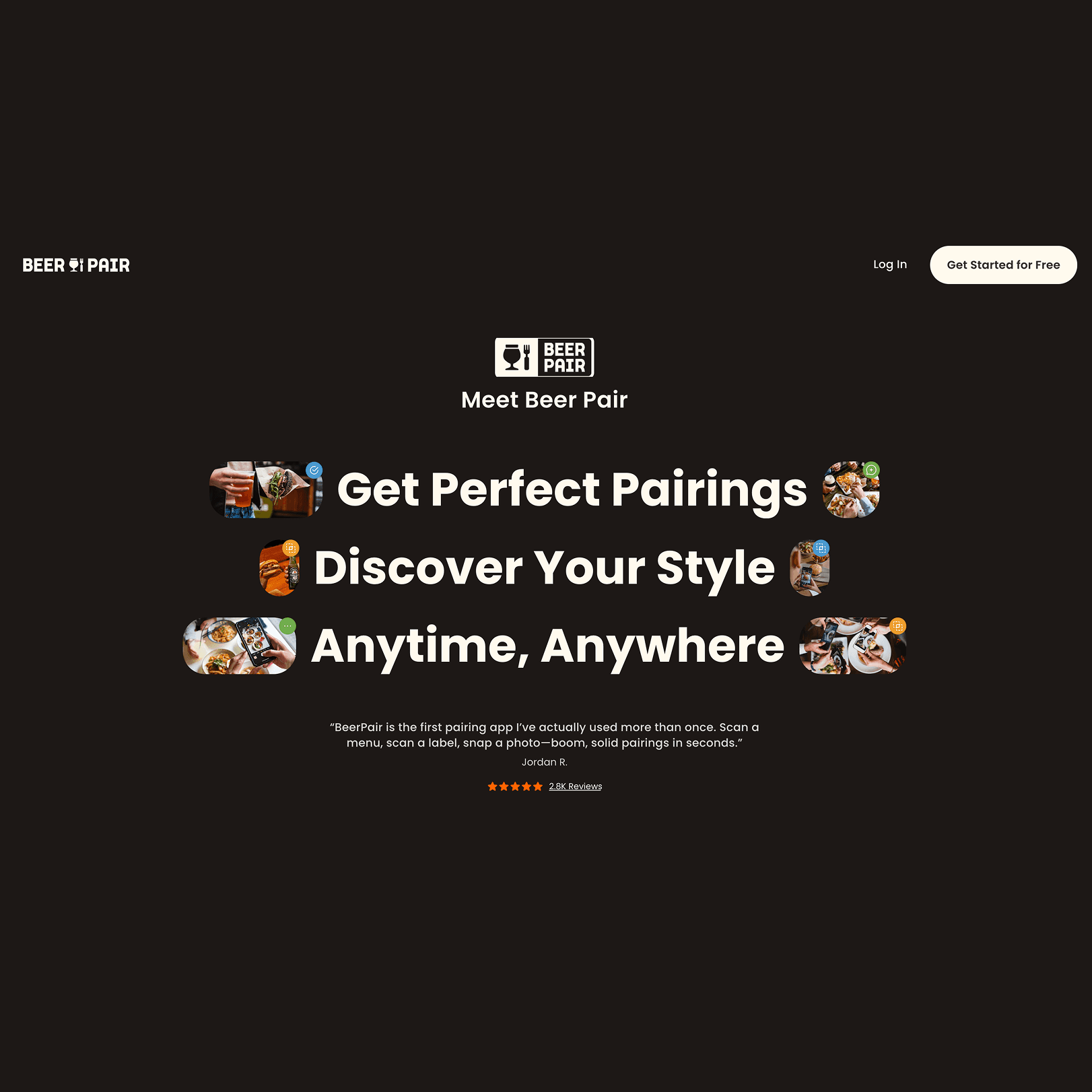 Beer Pair is a platform designed to simplify food and drink pairings through personalized recommendations. Originally launched as BeerPair.com, the product had a strong idea but lacked the clarity and structure needed to quickly communicate its value to new users.
